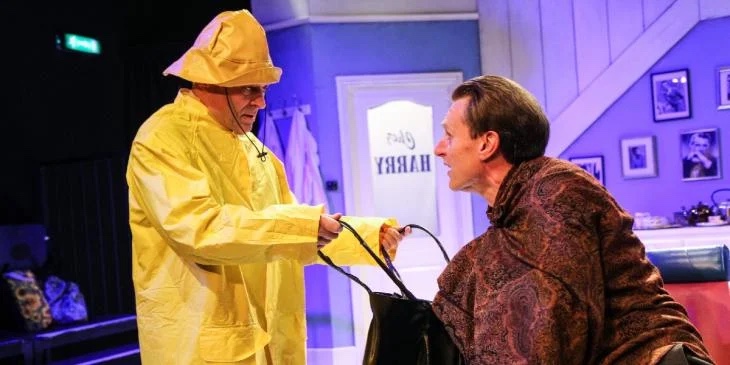 Part tragicomedy, part oddball thriller, and with a touch of melodrama, Staircase feels like something a Queer Harold Pinter might have come up with. Written and set before the decriminalisation of homosexuality in the UK, it’s about a gay couple who run a barber shop and one of whom is awaiting criminal proceedings having been caught in drag sitting on another man’s knee. Or is it? With tantalising ambiguity, Dyer suggests that all may not be as it seems with these two men, which would therefore mean that one of them -the playwright’s namesake, and played with preening panache by John Sackville- is even more of a troubled narcissist than we already imagine. It’s probably not fair to say any more than that for fear of spoilers for potential ticket buyers.