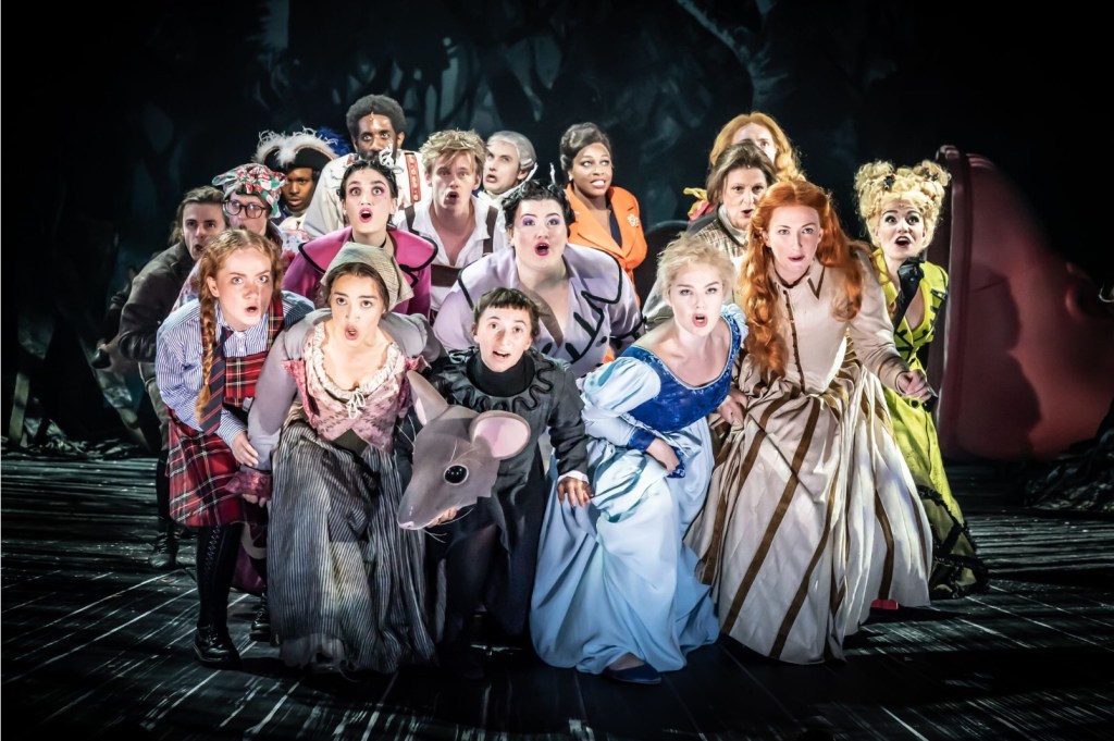 Another Sondheim expert is Gillian Bevan, here tremendously affecting as a more melancholy than usual Jack’s mother, and Audrey Brisson is a lovable, athletic Cinderella even if her voice isn’t quite the lush soprano ideal for this role. Equally athletic and lovable is Barney Wilkinson’s Jack, who delivers his signature ‘Giants In The Sky’ number perched atop a gigantic clock face suspended in mid air. It’s one of a series of stunning stage pictures, all watched over by a Greek chorus of woodland creatures that look like something out of Beatrix Potter.