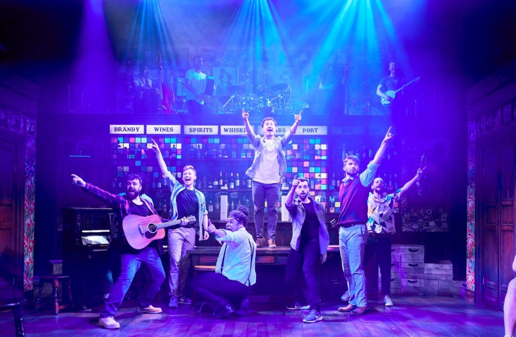 It’s practically immersive theatre: the economics of running a production with a cast of nine and a (sensational) band of four presumably couldn’t be made to work in an actual pub, which is where this raucous, loveable melange of fabulous music, jollity, some tears, lots of exhilaration and a fair bit of audience participation truly belongs, the producers have alighted on the slightly ramshackle Arts Theatre. This does feel like the next most appropriate venue, with it’s sticky floors and rickety seating, and designer Oli Townsend has gone to town blurring the line between the fictional Jungle Pub of the show and the auditorium: photos, hung up coats and hats plus other pubby paraphernalia line the walls of the stalls. If the rough-round-the-edges exuberance of Nic Doodson’s production sometimes feels a bit hemmed in on a traditional stage, the sheer talent and bonhomie of the current cast, a mixture of newbies and Choir of Man veterans, make up for it.