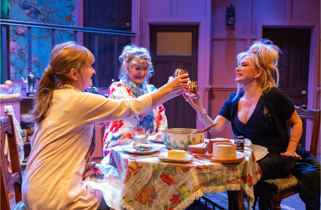 Charlot enjoys an almost-romance with Natalie Ogle’s likeable Anna, newly widowed and in Paris to visit her friend, but it’s actually the friendship between the women, including potty-mouthed, cosmetically enhanced, sexually rampant Raquel (Debbie Arnold providing a welcome shot of raunch and glamour) that is the main point of Hyem’s script. In Sally Hughes’s nimble production, that aspect of the play lands extremely well: Elvin, Ogle and Arnold create a credible dynamic as a trio of privileged women who were once at school together but whose lives then took wildly differing paths.