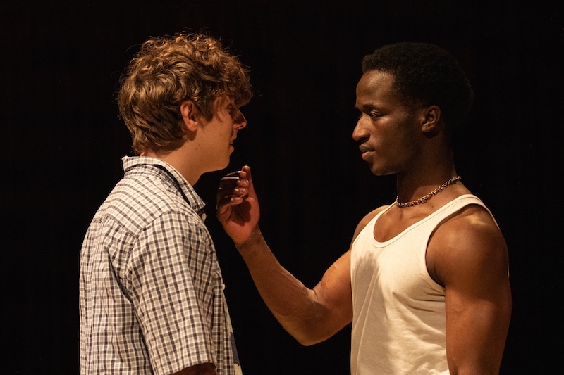 For a start, the deliberate lack of specificity forces us to engage and listen, although that’s not easy at first: the acoustics of the Gate’s new Camden home aren’t the best, rendering significant portions of early parts of the show at best sixty percent intelligible, at least from where I was sitting. More importantly, it encourages the audience to use their imagination to fill in the blanks, and that, in tandem with bold performance choices, constant breaking of boundaries between cast and audience, and O’Hara’s extraordinary writing, freebasing between cerebral and outrageous, is where Bootycandy acquires its genuine power and specialness. If you don’t know what the title means, well…just you wait.