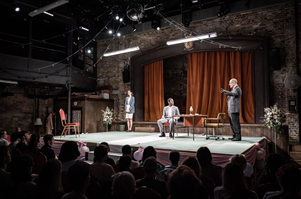 Tanya Reynolds excels as a new recruit to the sinister ministry, who becomes an unexpected, unwilling epicentre for the male machinations. When she claps back, it’s extremely potent: she points out that when a woman is listening, wrapt, to a much more powerful man, it’s usually due to fear rather than adoration. Reynolds is an extraordinary stage presence, gawky yet in control, vulnerable but tough. Aaron Neil appears only briefly at the end but is a funny, troubling figure who focuses and revitalises everything we’ve already seen.