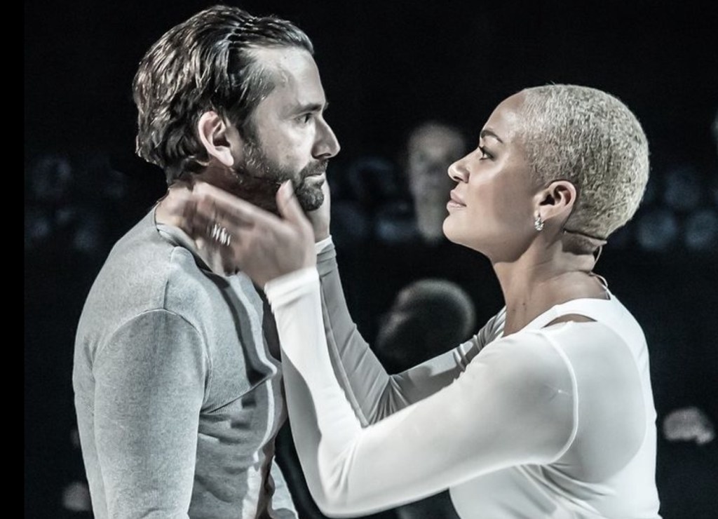 Cush Jumbo’s fine Lady Macbeth is clad in figure-hugging white, in vivid contrast to the darkness of the other costuming, but this disturbed and disturbing figure is no angel. Jumbo points up her intelligence and pragmatism but also an undercurrent of real brutality. Interestingly, the robust strength she demonstrates earlier renders her vulnerability and distress in the famous sleepwalking scene all the more powerful. Jumbo and Tennant don’t have the sexual chemistry Saoirse Ronan and James McArdle brought to the 2021 Almeida production for Yael Farber but that feels deliberate, this coupling feels driven more by status and ambition.