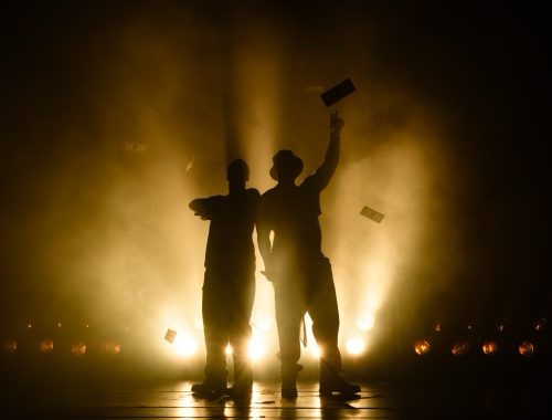 Philadelphia born Dave Harris was a slam poet before turning his hand to writing plays and I suspect that’s what accounts for Tambo & Bones’s breathtaking, free-form structure and way with language. It’s genuinely not like anything else I’ve ever seen: a challenging, exciting, racially charged almost-duet that examines Black masculinity in the US (although American culture is so all-encompassing that this play is likely to resonate wherever it’s performed in the western world) and comes to some pretty bleak conclusions about the pathways of humanity.