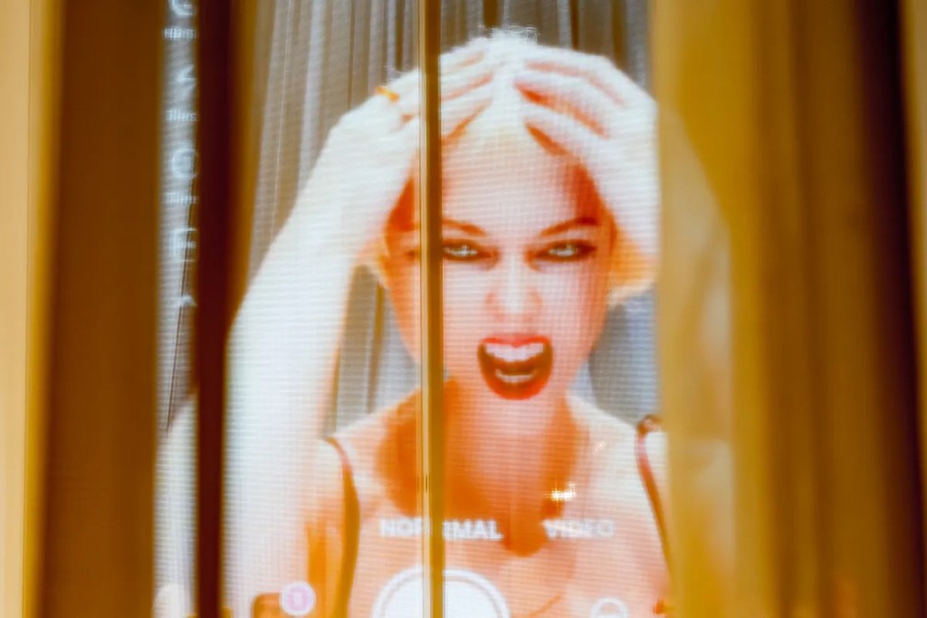 In fact, Williams is only collaborating with one of his Dorian Gray creative colleagues here, costume designer Marg Horwell whose eye-popping art-meets-fashion creations for Madame – usually a socialite but here an image-obsessed online influencer – could teach the team over at The Devil Wears Prada a thing or two. The aesthetic is similar to the earlier show though, with actors features cartoonishly beautified or grotesquely modified via filters as their images are live-streamed up on the the vast mirrored screens dominating Rosanna Vize’s opulent, oppressive boudoir set.