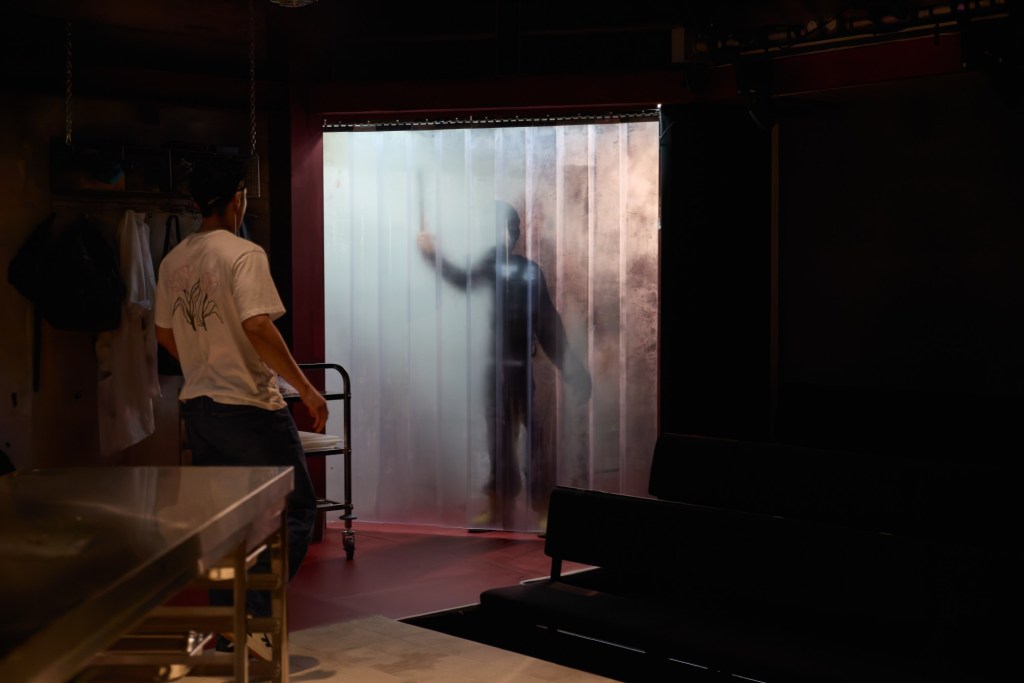 Mona Camille’s set turns the Park 200’s ground floor into the butchers shop anteroom, complete with carcasses hanging overheard, and has a clinical chilliness that contrasts strikingly with the heat of the text and performances. Turvey’s direction is immaculate, naturalistic but employing potent theatricality when required.