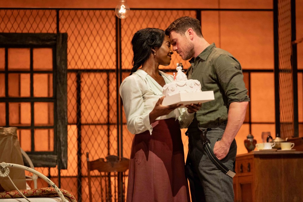 The other characters are equally fascinating and are given performances to match. There’s pregnant Shanita (a luminous but heartcatchingly real Racheal Ofori), thrilled to be following in family footsteps and taking great pride in being a vital part of the production line (“Love the way the line needs me. Like if I step away for even a second and don’t ask somebody to mind my post, the whole operation has to stop”). Then there’s young Dez (American screen actor Branden Cook in a terrific stage debut) who has big dreams but carrying an unseen mark on his back to match the all-too-visible one on his neck. The chemistry between Ofori and Cook is a shifting, fluid but ultimately scorching thing; both young actors are utterly brilliant, making their tough but tender characters entirely sympathetic yet never giving in to easy sentiment. It’s almost shocking how much we come to care about them.