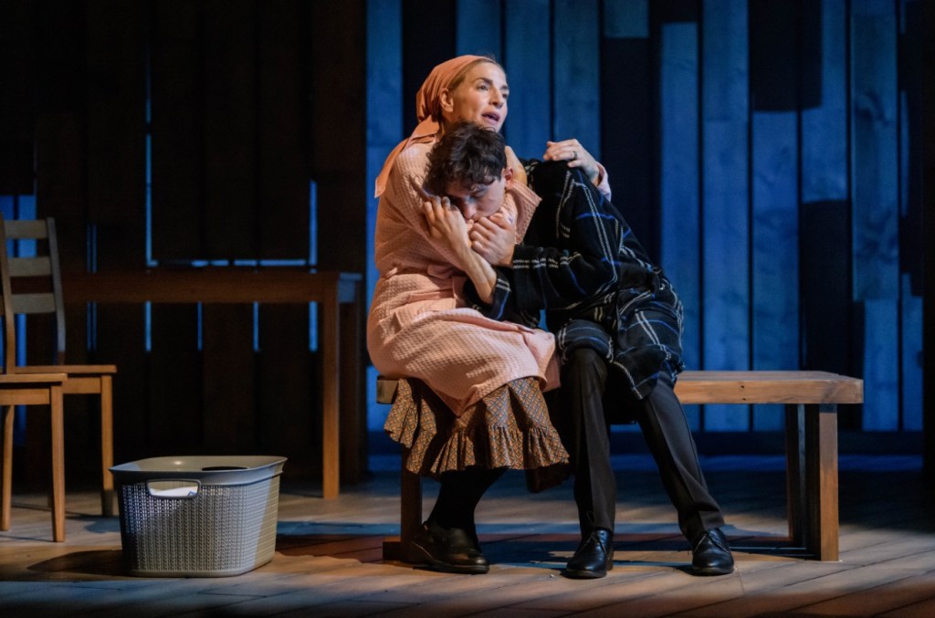 This is a play in part about the fallibility of the patriarchy, as thrillingly considered in the current Broadway hot ticket John Proctor Is The Villain, and it’s interesting to note that most of the creative team on this production is female. The solely female-driven moments, unscripted but striking, such as when the young women frolic with excited abandon on the top level of Amelia Jane Hankin’s rustic, workmanlike set after being freed from interrogation, or the imprisoned wives all accused of dealings with the devil appear in the same spot later on in pious, desperate prayer, stick in the memory.